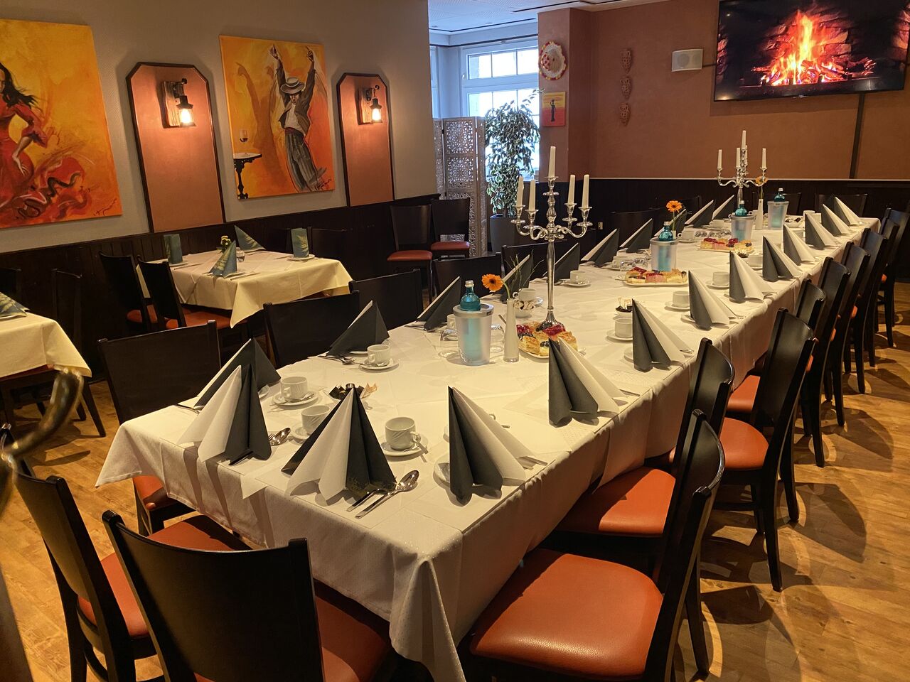 UNSER SAAL- Keine Feier ohne das Tapas-Jedermanns! Ob Geburtstag, Taufe, Hochzeiten, Trauerfeierlichkeiten, oder Betriebsfeiern, als geschlossene Gesellschaft machen wir Ihr Event einzigartig. Je nach Anlass richten wir uns ganz auf Ihre persönlichen Wünsche ein. Sie können wählen zwischen einem ausgewählten Menü, einem erlesenen Büffet oder nach a la carte bestellen. Wir bereiten alles frisch und liebevoll für Sie zu, sodass sie sich ganz auf ihre Feierlichkeiten konzentrieren können. In unserem Saal finden bis zu 50 Menschen problemlos Platz.